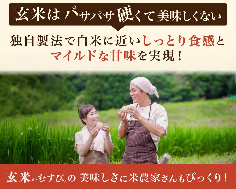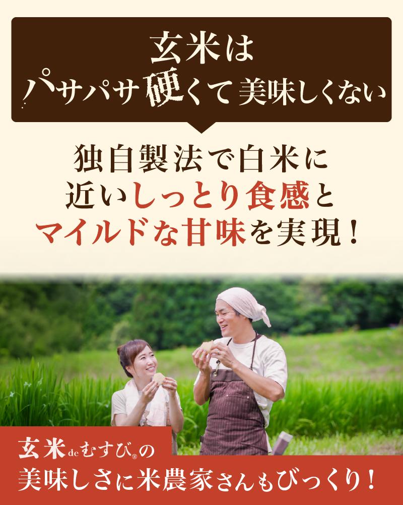 そんな中、先祖代々の米農家さんに「玄米deむすび」を試していただいたところ、「これが本当に玄米なのか」と玄米のおいしさへの新しい発見にびっくり。独自の技術によって白米に近い柔らかい食感を実現した「玄米deむすび」は、食物繊維や栄養素をしっかり体に取り入れつつ、美味しく食べられる商品です。